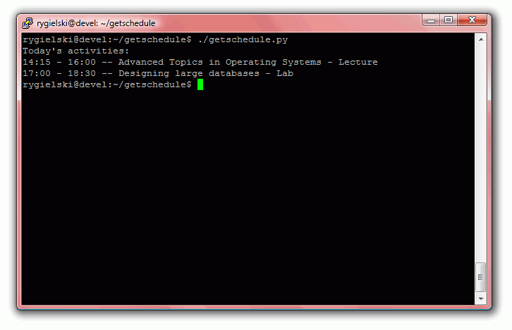 • Today's schedule, written in Python - source code | screenshot